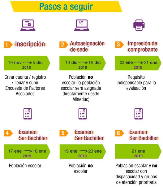 Según los pasos para rendir la evolución ser bachiller 2019, del 13 al 16 de diciembre esta la auto asignación, en la cual los rezagados deben escoger día, lugar y fecha para rendir la evaluación.