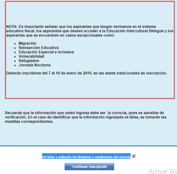 • Luego de esto debes de seleccionar donde dice “He leído y entiendo los términos y condiciones del servicio”