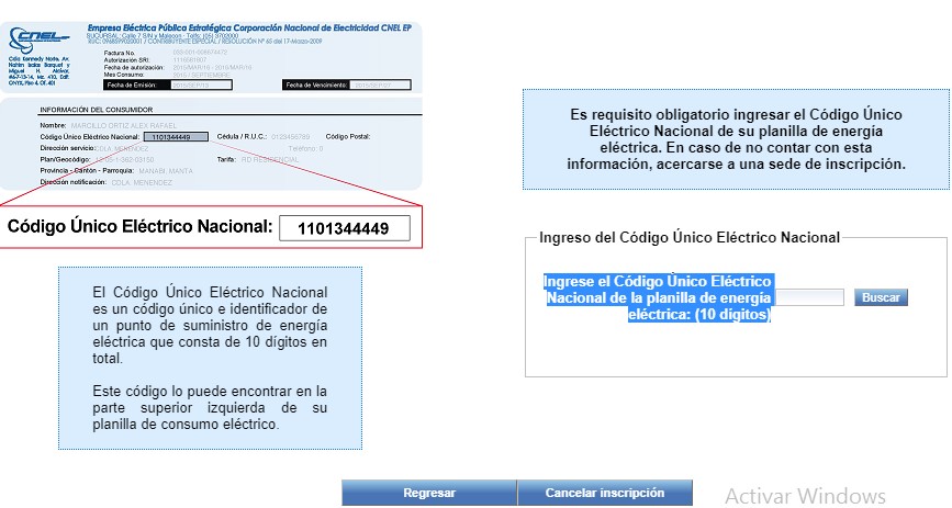 • de ahí debes seguir los pasos que te indica el sistema, lo primero que debes tener a mano es el Código Único Eléctrico Nacional de la planilla de energía eléctrica: (10 dígitos)